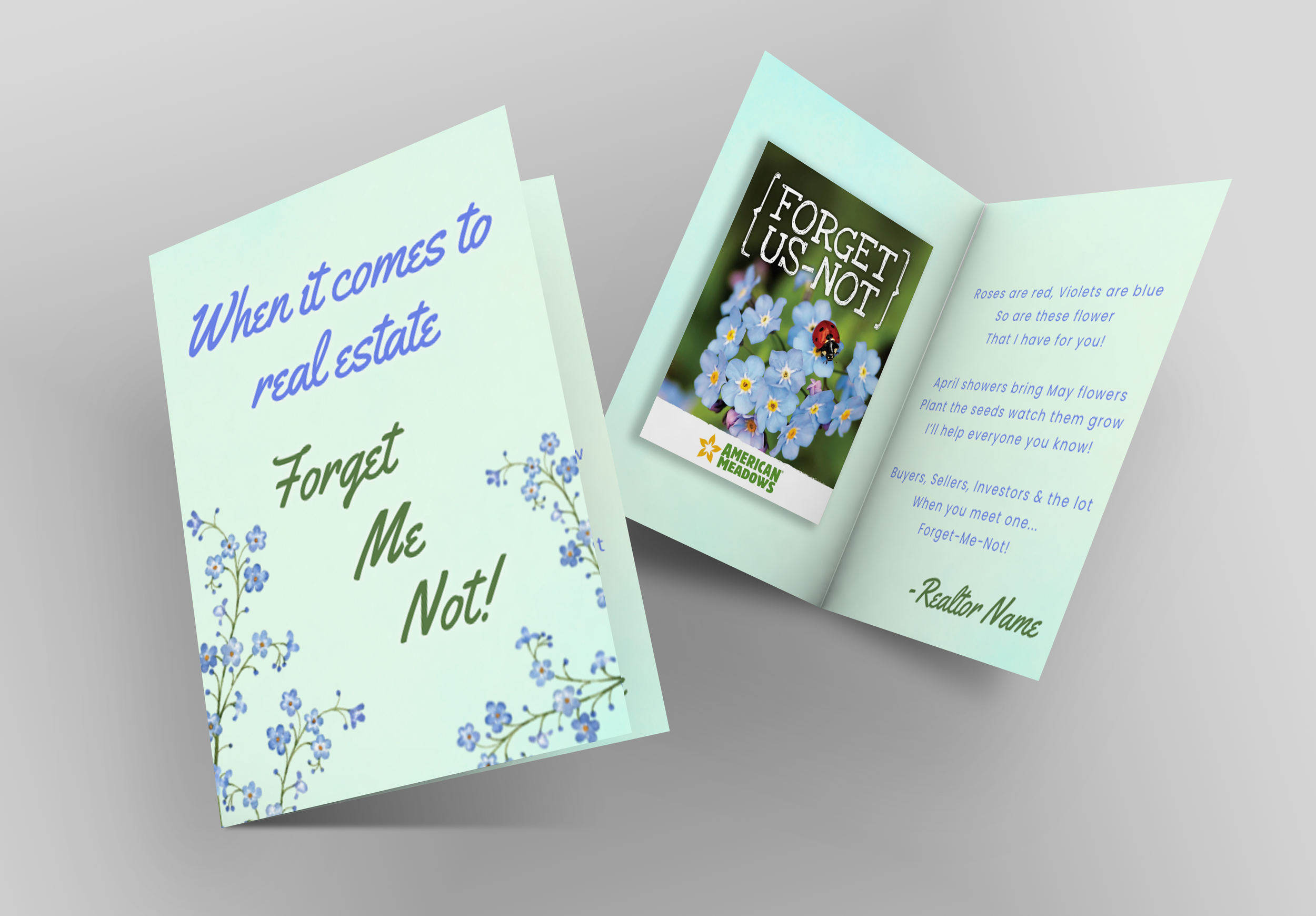 Want more referrals this spring? Start by planting the right seeds! Flower Seed Mailers are a memorable, hands-on touchpoint that your past and future clients will want to save. Each A2 (4.25” x 5.5”) folding card includes a packet of real Forget Me Not seeds, so when it comes to real estate, they’ll forget you not!