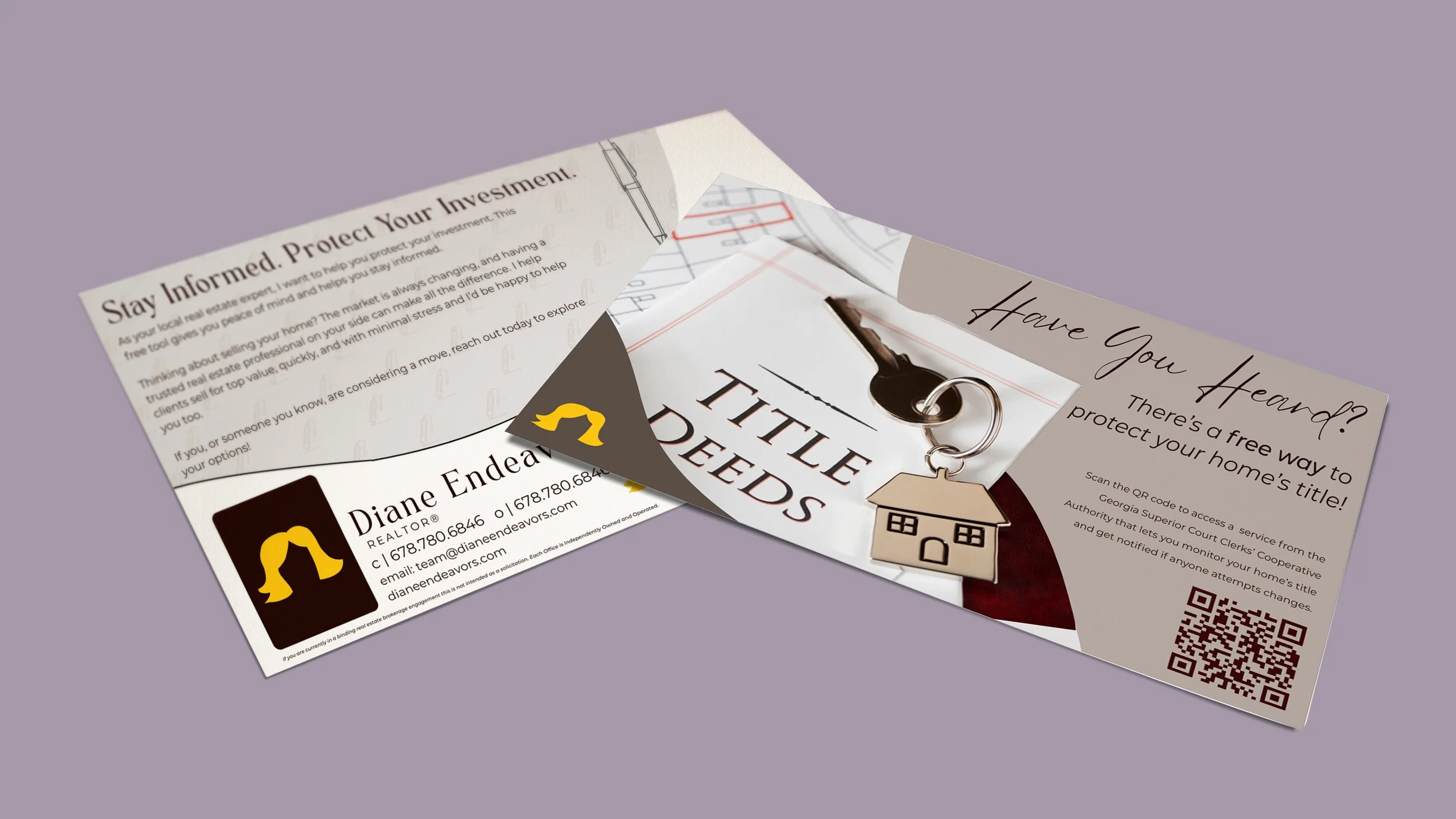 A hands-off mailing subscription for busy real estate agents. We print, prep, and mail to your database or neighborhood every month, so you stay consistent without lifting a finger.